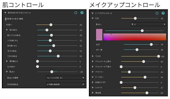 元の肌質を保持しつつ、シミ、シワ、吹き出物などの肌のトラブルに対しても、補正機能できれいに見せることができます。